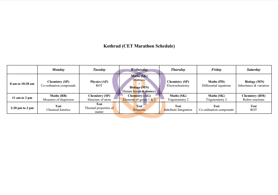 MHT - CET Marathon schedule