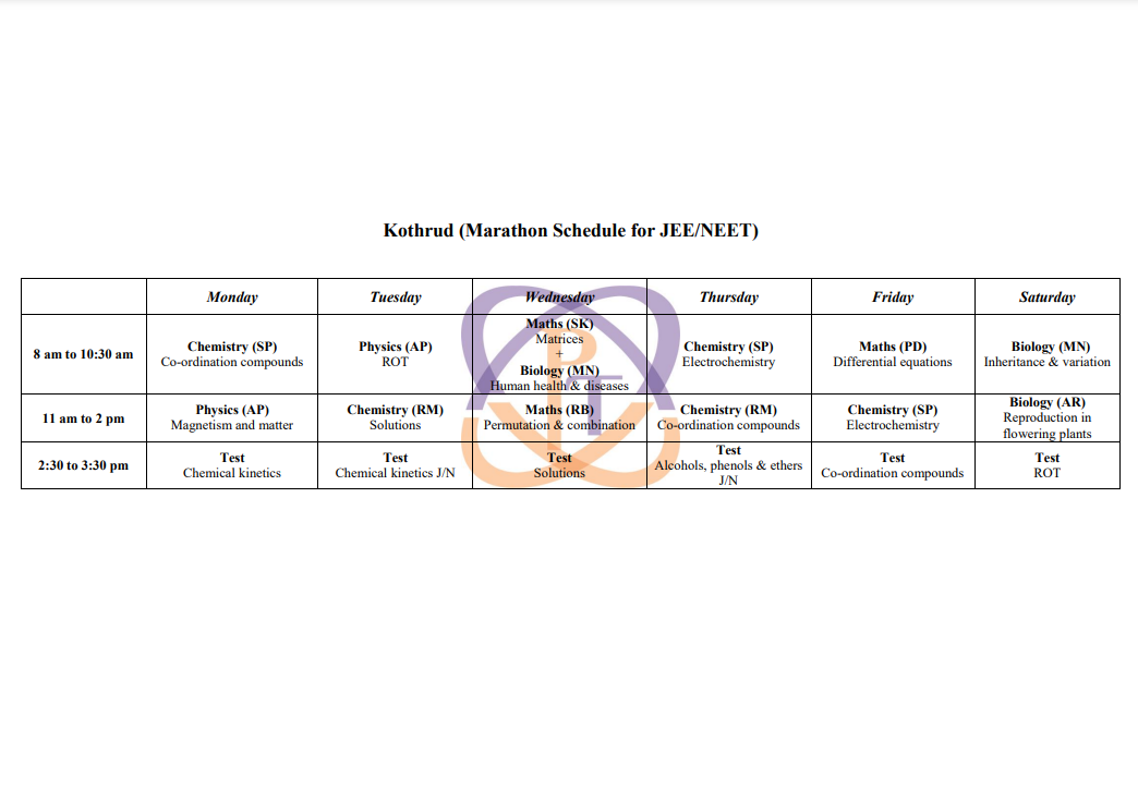 JEE/NEET Marathon Schedule